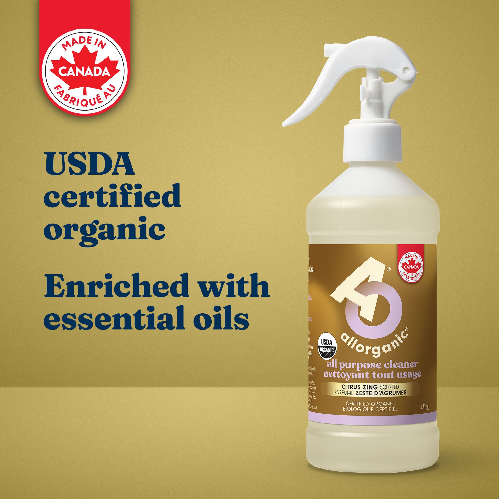 allorganic® Citrus Zing all purpose cleaner keeps every surface in your home clean. Lightly scented with essential oils of bergamot orange, geranium, and cedarwood to leave every space naturally fresh.